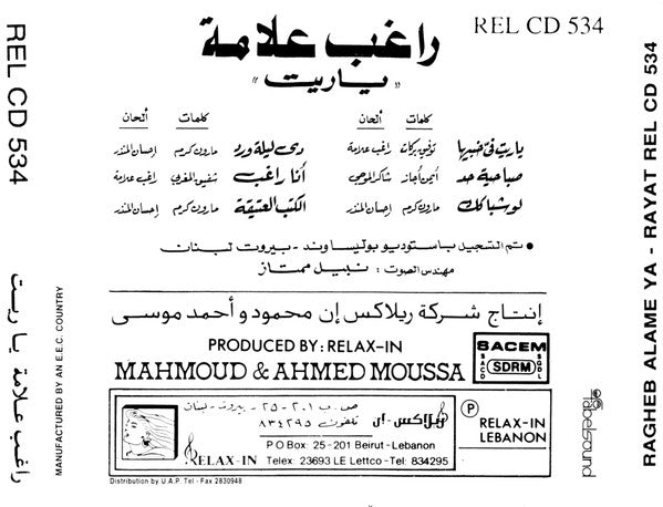 راغب علامة = Ragheb Alame* - يا ريت = Ya Rayat (CD, Album, RE)