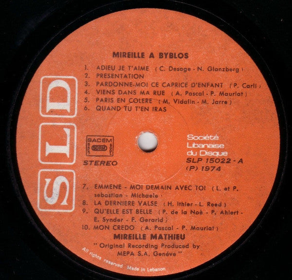 Mireille Mathieu : Mireille Á Byblos (LP)
