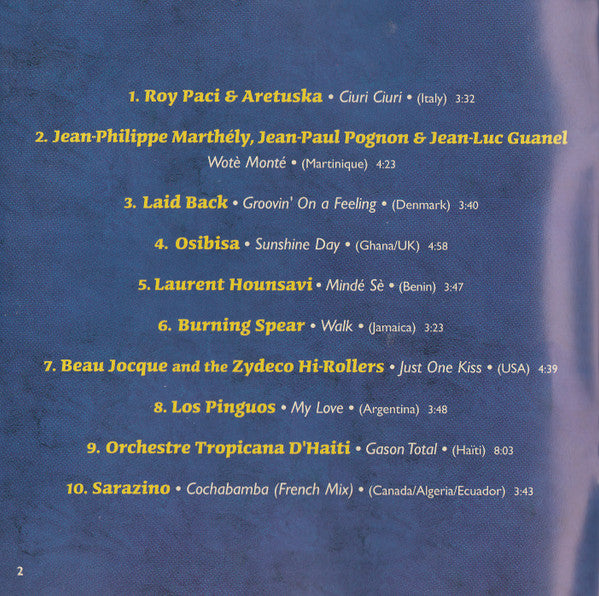 Featuring zouk, salsa, ska, compas, reggae, zydeco and more, this feel-good collection is guaranteed to enliven any party! Liner notes in English, Español and Français. This compilation ℗&©2007 Putumayo World Music. Issued in a digipak with an attached 28-page booklet.