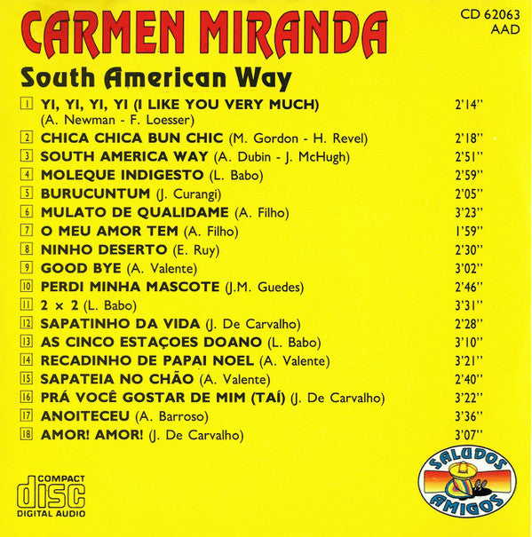 01 - Wrongly credited as "Yi, Yi, Yi, Yi (I Like You Very Much)". Wrongly credited to Alfred Newman and Frank Loesser. 02 - Wrongly credited as "Chica Chica Bun Chin". Wrongly credited to Mack Gordon and Harry Revel. 06 - Wrongly credited as "Mulato de qualidame".