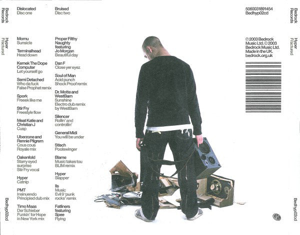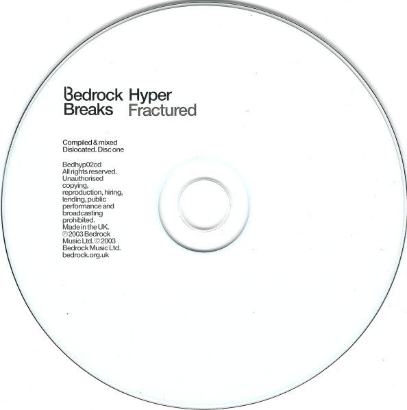 Track 1-1: Published by Kung Fu Army (ASCAP). ℗2002 Bedrock Music Ltd. Track 1-2: Recorded and mixed at The Echoroom, Olympic Studios, Barnes. Published by Copyright Control. Licensed courtesy of Sanctuary Copyrights Ltd. ℗2003 Sanctuary Records Group Ltd. Track 1-3: Recorded at Dope Computer Studios. ℗2002 Dope Computer Music. Track 1-4: Published by Boombox. Licensed courtesy of Boombox. ℗2002 Boombox. Track 1-5: Recorded at Airdog Funk Research Lab, Liverpool, UK. Licensed from Airdog Recordings Ltd. Published by Notting Hill Music Ltd./Airdog Music Ltd. ℗2002 Airdog Music Ltd. Track 1-6: Recorded and mixed at Stir Fry Studios. Published by Copyright Control. Licensed courtesy of Sanctuary Copyrights Ltd. ℗2003 Sanctuary Records Group Ltd. Track 1-7: Published by Bug Music / Copyright Control. ℗2002 Bug Music. Track 1-8: Published by Warner Chappel [sic/Bisbal Music/Westbury Music. ℗2002 Thursday Club Recordings Ltd. Track 1-9: Published by Mute Song Ltd. (BMI)/Universal Music Publishing (UK) Ltd. (ASCAP)/Shifty Shell Music (US) and EMI Music Publishing Ltd. (ROW)/Carlin Music Ltd. Taken from the album /master/18623Bunkka. Recorded at Real Noize and Real World. Shifty Shellshock appears courtesy of Sony Music Entertainment Inc. ℗2002 Mushroom Records (UK) Ltd./Perfecto Records. Track 1-10: Published by Copyright Control. ℗2002 Hope Recordings. Track 1-11: Recorded at Keith Groove. ℗2002 Toybox Records Ltd. Track 1-12: Published by EMI Music. ℗1999 Mushroom Records (UK) Ltd./Perfecto Records. Track 2-1: Published by Copyright Control. ℗2003 10 Kilo / 10 K UK. Track 2-2: ℗2002 Disuye Records HK. Track 2-3: Published by Copyright Control. Licensed courtesy of Finger Lickin' Recodrs. ℗2002 Finger Lickin' Records Ltd. Track 2-4: Published by Low Spirit Music and Edition Emma Peel/BMG UFA for the world excluding GAS and Eastern Europe. Published by Copyright Control / Low Spirit Music / BMG UFA (for GAS and Eastern Europe). Licensed courtesy of Low Spirit Recordings. ℗1997 Low Spirit Recordings. Track 2-5: Recorded at The Source. Published by Mute Song / Copyright Control. ℗2002 Critical Mass Records. Track 2-6: Written and produced at Lemonworks, Bristol for Hope Management Ltd. Published by Crossman / Burrows-Watson. ℗2002 Hope Recordings Ltd. Track 2-7: ℗2002 Sound Of Habib Recordings. Track 2-8: Published by Copyright Control. ℗2001 Moving Shadow Ltd. The title is misprinted as "Music Takes Tou (BLIM Remix)" Track 2-9: Published by Copyright Control. ℗2002 Hope Recordings. Track 2-10: Copyright Control. Licensed courtesy of Marine Parade. ℗2002 Marine Parade. Track 2-11: Recorded and mixed at Fatliners Studios. Published by Copyright Control. Licensed courtesy of Sanctuary Copyrights Ltd. ℗2003 Sanctuary Records Group Ltd. Digitally mixed, looped and edited at the Faroe Road Studio. Ⓟ 2003 Bedrock Music Ltd. Ⓒ 2003 Bedrock Music Ltd. Made in the UK.