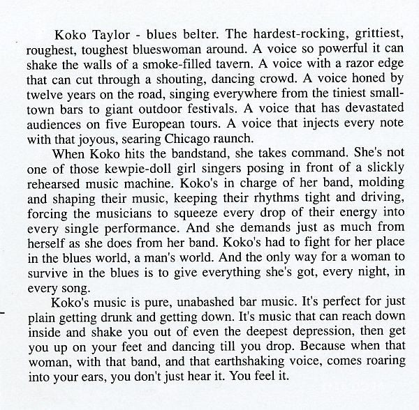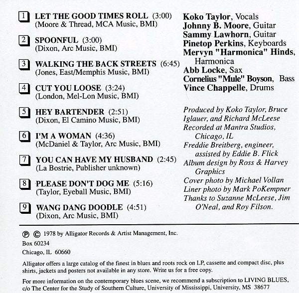 Recorded at Mantra Studios, Chicago, IL ℗©1978 by Alligator Records & Artist Management, Inc. Tracks published by: 1 - MCA Music, BMI 2, 6, 9 - Arc Music, BMI 3 - East/Memphis Music, BMI 4 - Mel-Lon Music, BMI 5 - El Camino Music, BMI 7 - Publisher unknown 8 - Eyeball Music, BMI