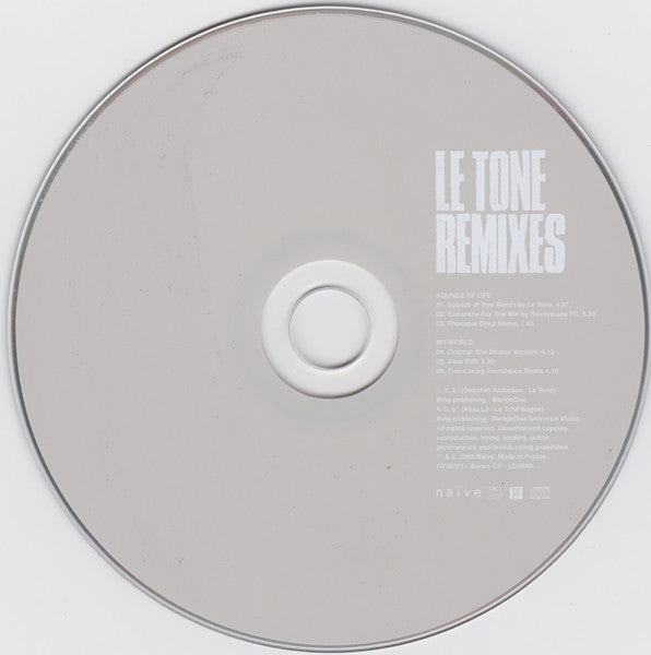 ℗ & © 2003 Naïve Made in France All songs published by BMG (Publishing) / MangeDisc except track 1-4 by BMG / MangeDisc / Nicolette Suwoton tracks 1-6, 2-4 to 2-6 by BMG (Publishing) / MangeDisc / Universal Music track 1-8 by BMG / MangeDisc / Blondemusic / Universal Music track 1-9 by BMG / MangeDisc / Taktic Music / Emilie Simon Title of track 1-10 spelled in the booklet as "Lanternes". Catalogue number printed on the spine as NV 42311 but as NV4231-1 on CD1