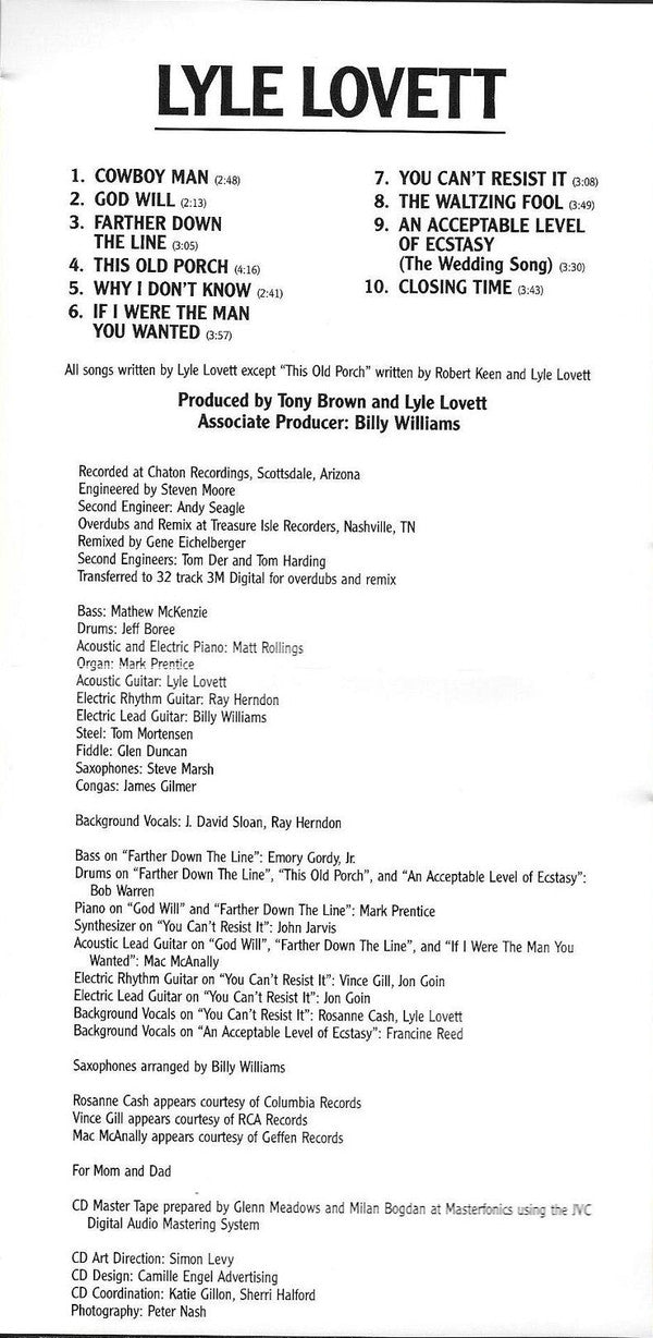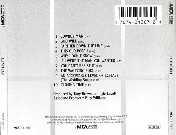 Lyle Lovett - Lyle Lovett (CD, Album, RE)