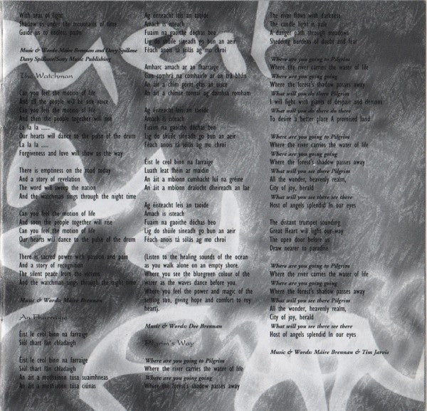 Recorded at Castle Sound Studios, Pencaitland, Scotland. "Big Yellow Taxi" recorded at Windmill Lane Studios, Dublin. "A Place Among The Stones" recorded at Burrenstone Studios, Co. Clare. The Blue Nile appear courtesy of Warner Bros. Records. Davy Spillane appears courtesy of Sony Records. Design for Dynamo Design Consultants. Management at Upfront Management. © 1994 BMG Records (UK) Ltd. All rights reserved. Printed in U.S.A.
