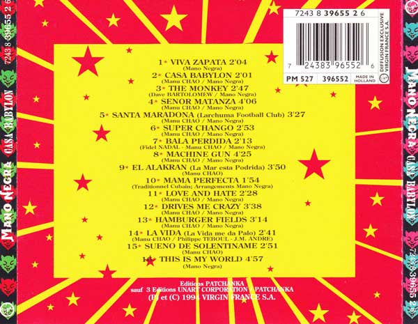 Editions Patchanka sauf 3. Editions Unart Corporation / Patchanka ℗ et © 1994 Virgin France S.A. Made in Holland Enregistré principalement au Studio Ornano, Paris et par ordre chronologique: Konni's Studio, Cologne Aston Studio, Paris N.Y. Studio, New York Studio Alacucho, Buenos Aires Digital Service, Paris Studio de la Madeleine, Paris Studio Guillaume Tell, Paris. Mixé a Napoli au Flying Recordings Studios sauf 1, 7 & 16 Studio Plus XXX, Paris et 15 Studio Ornano, Paris Editing et pre-mastering Audio Phase, Paris Masterisé au Studio Wisseloord, Amsterdam