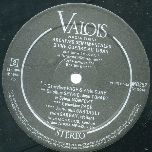 Nadia Tuéni's second disk. Project : Foundation Nadia Tueni & Baalbeck International Festival. Profits goes donation to Lebanese Red Cross.