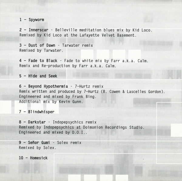 Track 2 remixed at the Lafayette Velvet Basement. Track 8 remixed at Doimonion Recordings Studio.