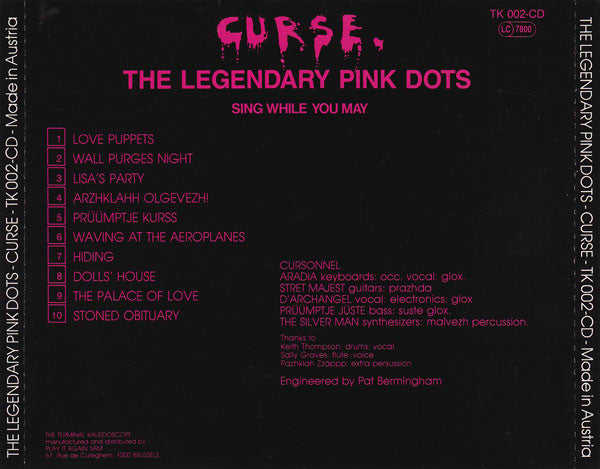 "Sing while you may" The Terminal Kaleidoscope manufactured and distributed by Play It Again Sam Made in Austria. -------------- Incidental info: Comes in a standard black tray jewel case with a single sheet booklet. The track listing on the backsleeve is incorrect. "Doll's House" and "The Palace Of Love" appear together on track 8. Actual total track time: 7:50. "Stoned Obituary" is split amongst tracks 9 and 10. Actual track time: 11:49.