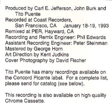 Recorded January 18 & 19, 1993 at Coast Recorders, San Francisco, CA.