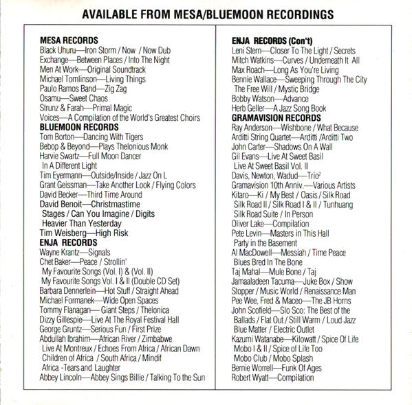 "Not For Nothin" Was Recorded Live At Elario's Jazz Club, La Jolla, Ca.