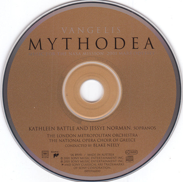 Vangelis - Mythodea (Music For The NASA Mission: 2001 Mars Odyssey) (CD, Album)