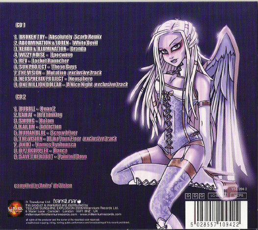 "18 Psychoactive Goa Traxx" Tracks 1-7, 1-9 & 2-6 "Exclusive" Track 1-3 credited to Xerox & Illumination Track 2-7 named Vamos Ayahuasca Liner notes credit these artists for writing and producing the following tracks, presumably a mistake: [a760602 and Nick Klimencko for track 1-8 [a494211 and [a441554 for track 2-1 Sagi Ochion for track 2-2 Cochi Gabriel and [a4158730 for track 2-8.