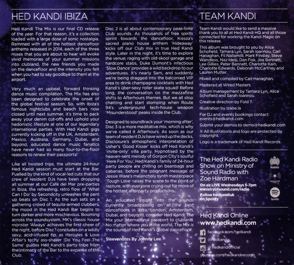 "The Sound Of Hed Kandi's Global Dancefloor" ℗ 2014 Hed Kandi Records. © 2014 Hed Kandi Records. Manufactured in the EU. Distributed in the UK by Sony DADC. Made in the UK.