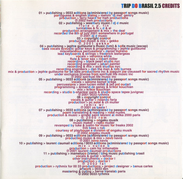 Subtitled "Remixes, Rares & Lives", this is a collection of remixes of tracks from [m109579 together with a live version of The Deal's <i>Obrigado</i> and some extra tracks, many of which were released on Vinyl on the Trip Do Brasil 2 EP series "Fabriqué en Autriche" (on disc label).