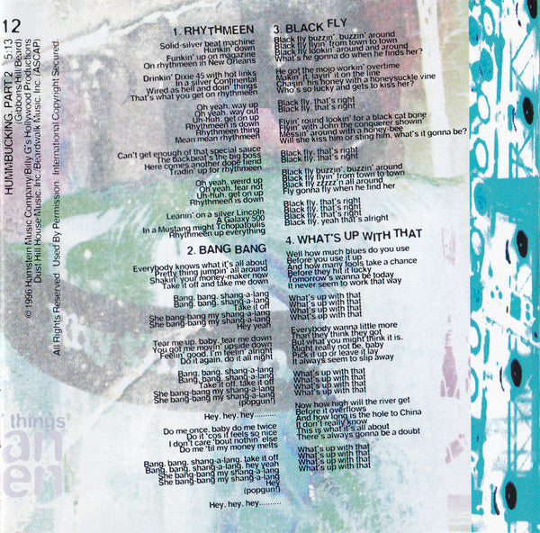 The Studios: Charlatan's Hollywood Ardent Studios Memphis John's House of Flunk Houston ℗ 1996 BMG Entertainment © 1996 Lone Wolf Production Company Made in the EC. Released with an 8-page booklet including lyrics and credits.