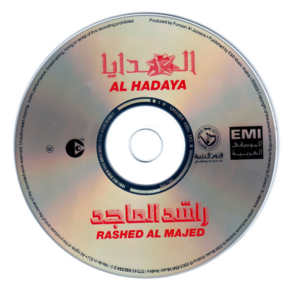 أغنيتان إضافيتان فقط على CD 2 BONUS TRACKS on CD only Printed in EU Produced Funoon Al Jazeera - Published by EMI Music Arabia (P) 2003 Copyright of this sound recording is owned by Funoon Al Jazeera, under exclusive license to EMI Music Arabia (C) 2003 EMI Music Arabia The Copy Control Logo is a trade mark IFPI and is use under license