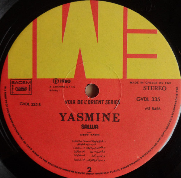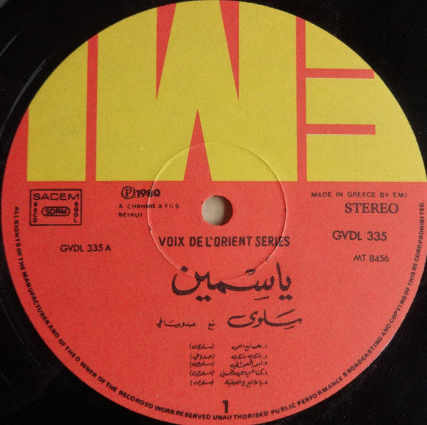 سلوى مع عبدو ياغي = Salwa* Avec Abdo Yaghi* : ياسمين = Yasmine (LP, Album)