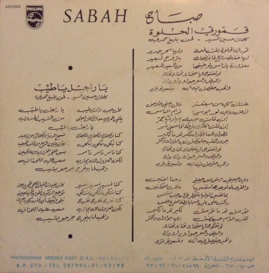 صباح* = Sabah - قمّورتي الحلوة / يا رجل يا طيب = Amourti El Helwa / Ya Rajol Ya Tayeb (7", Mono)