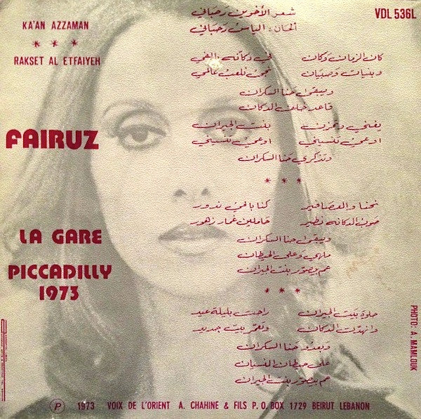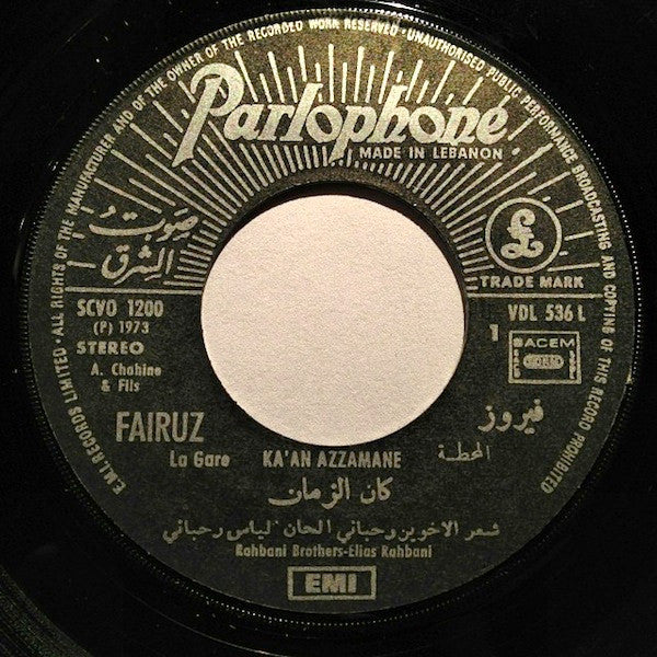Made in Lebanon From the Musical Play "La Gare" (المحطة) Piccadilly 1973 (P) 1973 Voix De L'Orient A. Chahine & Fils [Catalogue number appears as VDL 536L on cover and VDL 536 L on labels