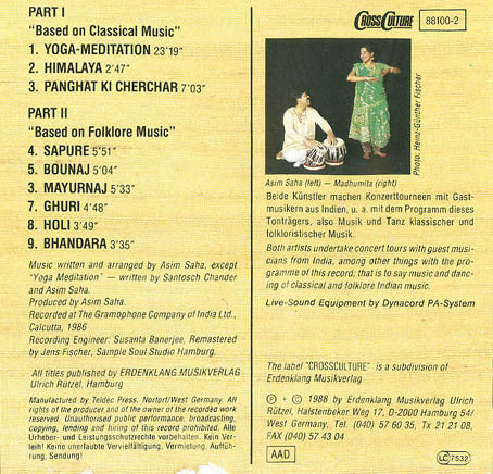 Produces by Asim Saha. Recorded at The Grammophone Company of India Ltd, Calcutta 1986.