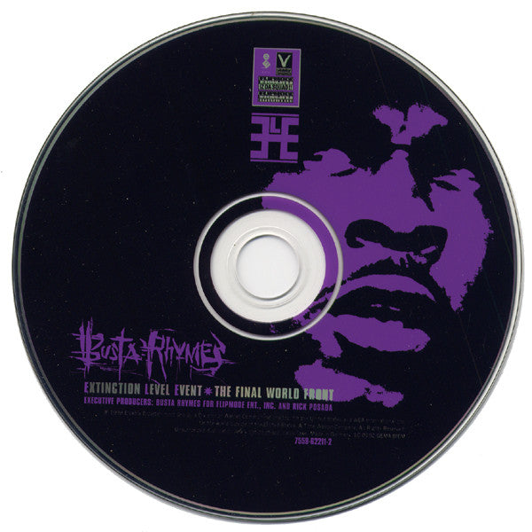 Same catalog number as this release but different price code (EW 851 instead of EW 868). Copies distributed in the German market may feature a 'Powered by Jam FM' sticker. Track 2 T'ziah's Music/Warner Chappell/Teamsta Ent./Every-Knight Music (BMI) Produced for Durte Muzik/Teamsta Ent. Recorded & mixed at Soundtrack Studios, NY Mixed & arranged for Flipmode Ent., Inc. Contains elements of "If Tomorrow Never Comes" performed by The Controllers. Used courtesy of Juana Records and Every-Knight Music Track 3 T'ziah's Music/Warner Chappell/Teamsta Music (BMI)/Eastlake Music (ASCAP) Produced for Durant Muzik/Teamsta Ent. Recorded & mixed at Soundtrack Studios, NY Mixed & arranged for Flipmode Ent., Inc. (Busta Rhymes) & Durant Muzik/Teamstz Ent. (Dominick Lamb) & for Teamstz Ent. (Darryl Sloan) Contains elements of "Topless Dancers Of Corfu" performed by Dick Hyman. Used courtesy of MCA Records, under license from Universal Music Special Markets, Inc. and Eastlake Music Track 4 T'ziah's Music/Warner Chappell/Teamsta Music/MCA-Duchess Music (BMI) Produced for Durant Muzik/Teamsta Ent. Recorded & mixed at Soundtrack Studios, NY Mixed & arranged for Flipmode Ent., Inc. (Busta Rhymes) & Durant Muzik/Teamstz Ent. (Dominick Lamb) & for Teamstz Ent. (Darryl Sloan) "Early In The Morning" performed by Terry Baxter And His Orchestra used courtesy of Sony Music Entertainment and MCA-Duchess Music (BMI) Track 5 T'ziah's Music/Warner Chappell (BMI)/Damon Blackmen Music (ASCAP) Produced for Ruff Ryders Ent., Inc. Recorded & mixed at Soundtrack Studios, NY Recorded at Larrabee Studios, Los Angeles Mixed & arranged for Flipmode Ent., Inc. (Busta Rhymes) & Ruff Ryders Ent., Inc. (Swizz Beatz) Track 6 T'ziah's Music/Warner Chappell/Bamba Ami Music/Ramp Music/Dutty Nigga Music/Rah Digga Music/Kill Music (ASCAP)/Sludgeline-Sloppits Music (BMI) Produced by Jamal of Africian Connection Prod. Recorded & mixed at Soundtrack Studios, NY Mixed & arranged for Flipmode Ent., Inc. (Busta Rhymes) & Jamal of African Connection Prod. Flipmode Squad appears courtesy of Flipmode Entertainment, Inc./Elektra Entertainment Group Track 7 T'ziah's Music/Warner Chappell (BMI)/Damon Blackmen Music (ASCAP) Produced for Ruff Ryders Ent., Inc. Recorded & mixed at Soundtrack Studios, NY Recorded at Larrabee Studios, Los Angeles Mixed & arranged for Flipmode Ent., Inc. Track 8 T'ziah's Music/Warner Chappell/Dayna's Day (BMI) Produced for Dikadia Prod. Recorded & mixed at Soundtrack Studios, NY Mixed & arranged for Flipmode Ent., Inc. (Busta Rhymes) & Dikadia Prod. (Rockwilder) Track 9 T'ziah's Music/Warner Chappell/Zadiyah's Music/Armacien Music/Fantasia/Musidisc/Warner Chappell Music (BMI) Produced for Tumblin' Dice Prod., Inc. Recorded & mixed at Soundtrack Studios, NY Mixed & arranged for Flipmode Ent., Inc. (Busta Rhymes) & Tumblin' Dice Prod., Inc. (Rashad Smith) "New Bell" written and performed by Manu Dibango, used courtesy of Fantasia/Musidisc/Warner Chappell Music Tracks 10, 12 T'ziah's Music/Warner Chappell (BMI)/I'ma Play Jason Music (ASCAP) Produced for B.U.D.A Prod., Inc. Recorded & mixed at Soundtrack Studios, NY Mixed & arranged for Flipmode Ent., Inc. (Busta Rhymes) & B.U.D.A Prod., Inc. (D.J. Scratch) Track 11 T'ziah's Music/Warner Chappell (BMI)/Bout It Music/LLC/Zomba Ent., Inc./2000 Watts Music, Inc./W.B. Music Corp./Kenny Flav Publishing/W.B. Music Corp. (ASCAP) Produced for 2000 Watts Ent., Inc. Recorded at Quad Studios, NY & No Limit Studio, Baton Rouge Mixed at Quad Studios, NY Mixed & arranged for 2000 Watts Ent., Inc. (Darrell "Delite" Allamby & Kenny Flav) Vocals arranged for Flipmode Ent., Inc. Music recorded at Quad Studios, NY All vocals recorded at No Limit Studios, Baton Rouge for Beats By The Pound Mystikal appears courtesy of No Limit/Jive Records Track 13 T'ziah's Music/Warner Chappell (BMI)/I'ma Play Jason Music (ASCAP)/Rushgroove/Spice Rhymes Publishing (BMI) Produced for B.U.D.A Prod., Inc. Recorded & mixed at Soundtrack Studios, NY Mixed & arranged for Flipmode Ent., Inc. (Busta Rhymes) & B.U.D.A Prod., Inc. (D.J. Scratch) Contains samples from "The Bubble Bunch" by Jim Spicer, under license from Polymedia, a division of Polygram Group Distribution Inc. Used courtesy of Rushgroove/Spice Rhymes Publishing Track 14 T'ziah's Music/Warner Chappell (BMI)/Hassencentric (ASCAP)/Raineyville Publishing (BMI) Produced for Fantom Of The Beat Recorded & mixed at Soundtrack Studios, NY Mixed & arranged for Flipmode Ent., Inc. (Busta Rhymes) & Fantom Of The Beat (Hassan Big Hass The Fantom) "Sunshower" performed by Dr. Buzzards Original Savanna Band, used courtesy of RCA Records and Raineyville Publishing Track 15 T'ziah's Music/Warner Chappell (BMI)/2000 Watts Music, Inc./Warner Chappell/Toni Robi Music/WB Music Corp. (ASCAP) Produced for 2000 Watts Ent., Inc. Music recorded at Soundtrack Studios, NY Recorded at Quad Studios, NY & House Of Blues Studios, Memphis Mixed at Quad Studios, NY Mixed & arranged for Flipmode Ent., Inc. (Busta Rhymes) & 2000 Watts Music, Inc. (Darrell "Delite" Allamby & Kenny Flav) Additional background recorded at Quad Studios, NY Lead vocals recorded at House Of Blues Studios, Memphis Janet Jackson appears courtesy of Virgin Records America Inc. Antoinette Roberson appears courtesy of Millenium 2000 Records/Relativity Track 16 T'ziah's Music/Warner Chappell/Deric Angellettie Music (BMI)/Nash Mack/Warner Chappell (ASCAP)/Irving Music, Inc. (BMI) Recorded & mixed at Soundtrack Studios, NY Mixed & arranged for Flipmode Ent., Inc. (Busta Ryhmes) & De Dot (Deric Angellettie) Track 17 T'ziah's Music/Warner Chappell/Dusty Fingers Music/Regent Music Corp. (BMI) Produced for Diggin' In The Crate Prod., Inc. Recorded & mixed at Soundtrack Studios, NY Mixed & arranged for Flipmode Ent., Inc. (Busta Rhymes) & Diggin' In The Crate Prod., Inc. (Diamond D.) Featuring samples from The Incredible Bongo Band recording "Apache", by arrangement with Warner Special Products and Regent Music Corp. Track 18 F