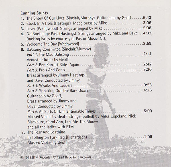 Issued with a 6-page fold-out inlay with credits and liner notes Backing tracks recorded at Tollington Park Studios Overdubbs recorded at Decca No. 2 and at AIR London Studios Mixed at Decca No. 2 ℗ 1975 BTM Records © 1994 Repertoire Records The similar release is a remastered edition with mastering SID code and pressed by Sony DADC