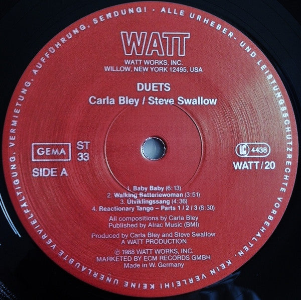 Manufactured and marketed by ECM Records, Gleichmannstraße 10, 8000 München 60
