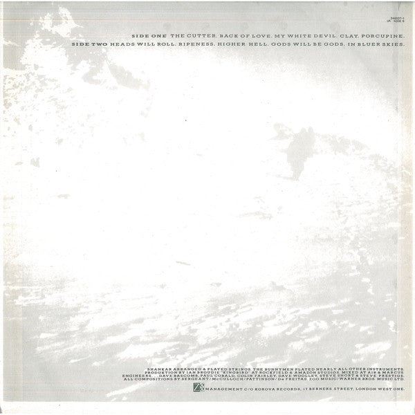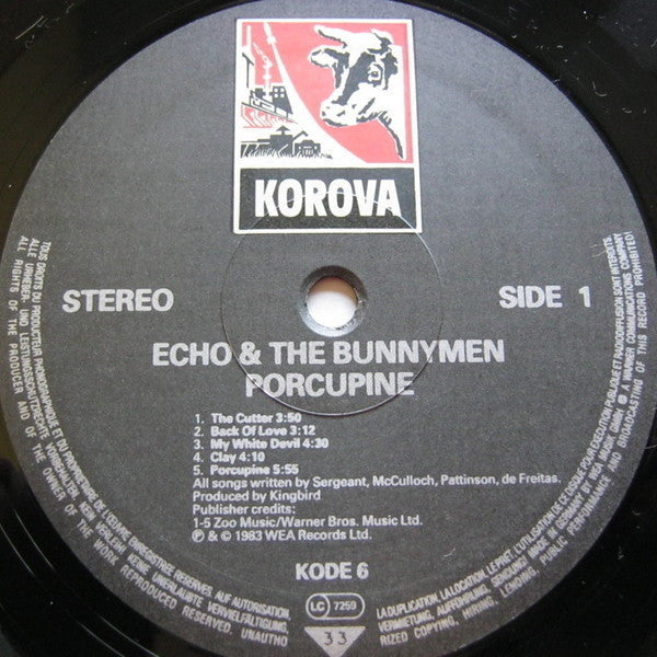 First pressing released without barcode on sleeve and with credits printed on a polylined liner. KODE 6 only on labels; also 240027-1 on inner and rear sleeve, 24.0027-1 on spine. A limited number of the first UK pressing included a free five track cassette. This was the same cassette as given away with some copies of the "The Cutter" 7" single that was released at about the same time. ℗&© 1983 WEA Records Ltd. ZOO MANAGEMENT c/o Korova Records 17 Berners Street London, West One "PINING FOR THE PORK OF THE PORCUPINE" Manufactured in Germany ---------------- Mastering credit derived from matrix.