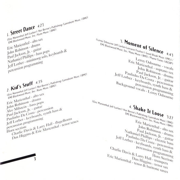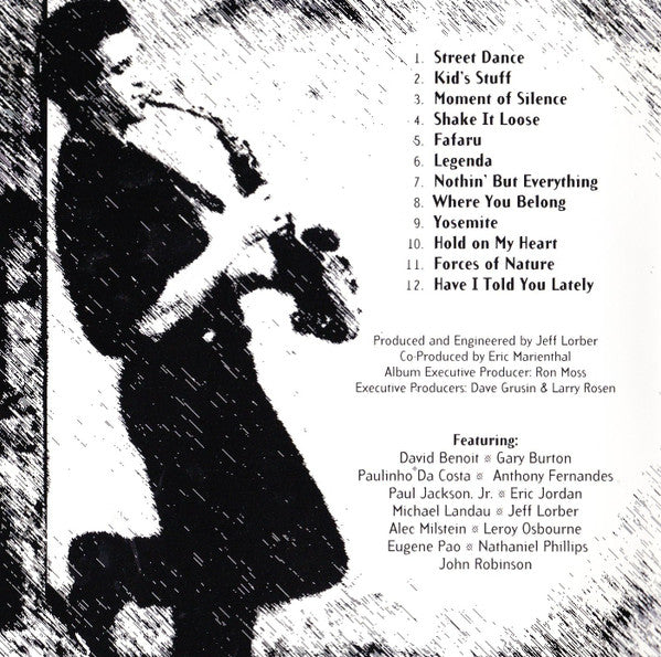 Tracks 1 to 5, 7 to 11 Recorded and Mixed at JHL Sound; Pacific Palisades, CA Tracks 6, 12 Recorded at Sony Studios, Kowloon, Hong Kong; Additional Recording at 29th Street Studios, Torrence, CA Digital Editing at The Review Room, NYC ℗ & © 1994 GRP Records, Inc. GRP Trademark Reg. an MCA Company. Distributed by BMG. Printed and Made in the U.K. Jeff Lorber appears courtesy of Verve Records Paul Jackson, Jr. appear through the courtesy of Atlantic Recording Corporation Michael Landau appears courtesy of Polygram Records Gary Burton appears courtesy of GRP Records