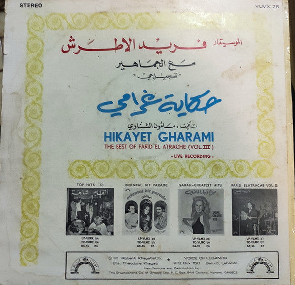 Farid El Atrache : Hikayet Gharami "The Best Of Live Recording Volume III" (LP)