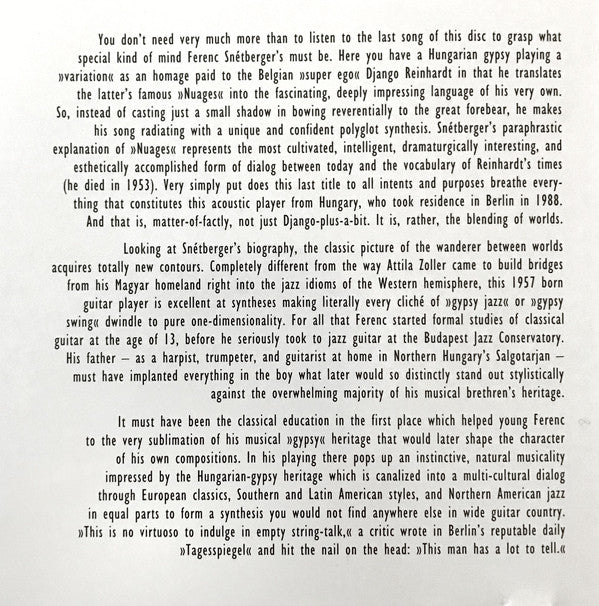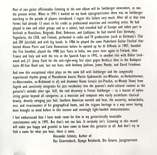 Recorded on November 7—13, 1994 at Farm Studio, Cessalto, Italy. ℗ & © Enja Records Matthias Winckelmann GmbH, Germany. In the US licensed to Koch International L.P. Publisher: All compositions published by Ed. Mawi (GEMA)