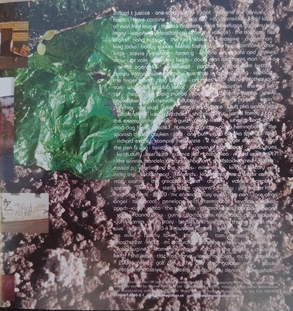 Track 0 is a hidden track which can be played by rewinding from track 1 to position -4:05 (the song is not mentioned or credited on the release). Track 1 Published by Warner Chappell North America/EMI Music Publishing/EMI United Partnership Contains a sample of 'Dallas (Theme)', courtesy of Warner Music, written by Jerrold Immel. Published by Warner Chappell North America, and 'Gonna Fly Now' by The Rocky Orchestra courtesy of Warner Music, written by Bill Conti, Carol Connors, Ayn Robbins. Published by EMI Unart Catalog Inc. ℗ 2004 Warner Music UK Ltd. Track 2 Published by EMI Music Publishing/Frank Music Corp. (ASCAP) Contains a sample of 'Wild Dogs' a/k/a 'An Elephant Called Slowly' by Howard Blake courtesy of RCA Records. Contains sampled portions of the composition 'An Elephant Called Slowly' written by Howard Blake © 1970 (renewed) Frank Music Corp. (ASCAP) ℗ 2004 Warner Music UK Ltd. Track 3 Published by Copyright Control, EMI Music Publishing, Universal/Island Music, Warner/Chappell Music Uppacut appears courtesy of SFDB Records Contains elements from 'Jive Elephant' written by Martha Velez and The Olympic Runners. Published by Universal/Island Music, Warner/Chappell Music, Copyright Control. Courtesy of Warner Music ℗ 2004 Warner Music UK Ltd. Tracks 4, 7 Published by EMI Music Publishing ℗ 2004 Warner Music UK Ltd. Track 5 EMI Music Publishing, Zella Music (BMI)/Blue Image Music (PRO) administered by BMG Music Publishing Ltd. Contains elements of 'Music' by D-Train courtesy of Unidisc Music. Written by Hubert Barclay Eaves III, James Williams. Published by Zella Music (BMI) and Blue Image Music (PRO) (and as administrator for Diesel Music (BMI)) both divisions of Unidisc Music Inc. ℗ 2004 Warner Music UK Ltd. Track 6 Published by EMI Music Publishing, Great Honesty Music Inc/WB Music Corp, Upam Music Co. Contains elements from 'The Buttercorn Lady' written by Chuck Mangione, published by Upam Music Co, and 'Spirit In The Sky' written by Norman Greenbaum, published by Great Honesty Music Inc/WB Music Corp Track 8 Published by EMI Music Publishing, EMI Virgin Music Ltd, Sony Music Publishing Contains a sample from 'Behind The Mask' as recorded by Greg Phillanganes, written by Ryuichi Sakamoto/Chris Masdell, published by EMI Virgin Music Inc/KAB America Inc/Sony Music Publishing Japan. Courtesy of RCA Records Track 9 Published by EMI Music Publishing, peermusic (UK) Ltd Contains a sample of 'Black Jack Davey' by Steeleye Span courtesy of Universal Music Group, traditional arrangement by Prior/Hart/Knight/Johnson/Kemp/Pegrum. Published by peermusic (UK) ltd ℗ 2004 Warner Music UK Ltd. Track 10 Published by EMI Music Publishing, Sony/ATV Music Publishing/Screen Gems-EMI Music Contains a sample of 'Curious' by Midnight Star, courtesy of Sanctuary Music Group, written by Boaz Watson/Bobby Lovelace/Melvin Gentry. Published by Screen Gems-EMI Music Inc/Calloco Music Inc/Sony/ATV Music Publishing. ℗ 1983 A Solar recording licensed courtesy of Sanctuary Records Group Ltd ℗ 2004 Warner Music UK Ltd. Track 11 Published by EMI Publishing ℗ 2004 Warner Music UK Ltd. Track 12 Published by EMI Music Publishing/Azuli Music/EMI Music Publishing Contains elements of '21 Seconds' written by Vincent, Dawkins, Moore, Aminu, Walters, Neil, Harvey, Maffia, Williams, Weir, Phillips. Published by Azuli Music/EMI Music Publishing Contains elements of 'Breakdown' by The Funkbusters. Written by Martin Fingerbottom. Copyright control ℗ 2004 Warner Music UK Ltd. Track 13 Published by EMI Music Publishing Contains elements of 'Deep Inside' by Liverfailure. Written by Gaz Sexsmith ℗ 2004 Warner Music UK Ltd. Recorded at tom lennon & raul mccartney school of excellence, Newport city ℗ 2004 Warner Music UK Ltd. © 2004 Warner Music UK Ltd. The copyright in this sound recording and artwork is owned by Warner Music UK Ltd. A Warner Music Group company. Manufactured in the E.U.