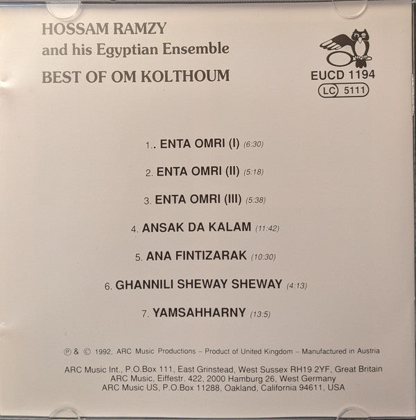 Hossam Ramzy And His Egyptian Ensemble* : Best Of Om Kolthoum (CD, Album)