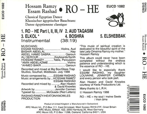 Hossam Ramzy / Essam Rashad : Ro-He (CD, Album)