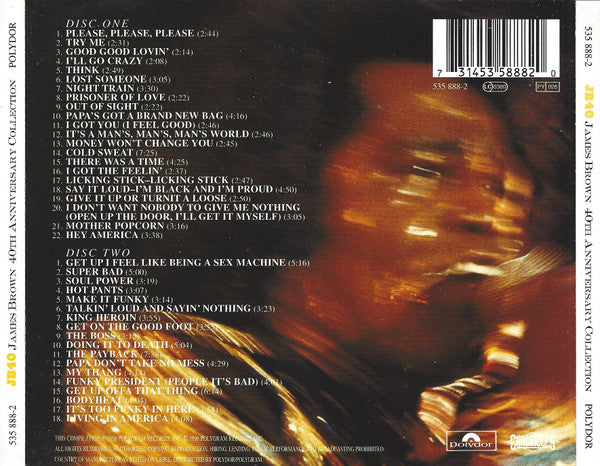 Jewel case, clear tray 12-page fold-out booklet Track 2.04: is in fact "Hot Pants Pt. 1" from the 188084 single, but not given as such on the release itself. Track 2.05: is in fact "Make It Funky (Part 1)" from the 108151 single, but not given as such on the release itself.