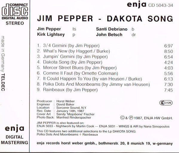 Phonographic Copyright (p) Enja Records Horst Weber GmbH
