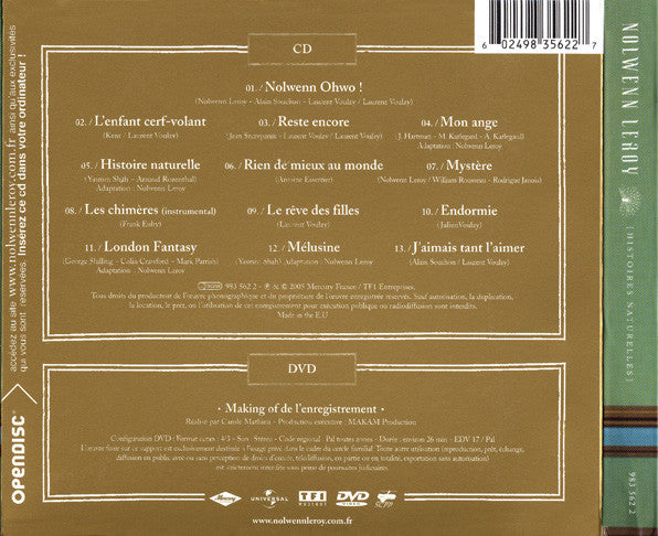 CD 0hr 47 mn 55s: Opendisc® linked to the artist website. Recorded from January to October 2005. Bass & Drums, Keyboards, Guitar, Vocals: recorded at Studio "Au bord de l'Eau", (Champigny Sur Marne). Strings & Piano: recorded at Studio Davout, (Paris). Keyboards, Guitar, Vocals: recorded at Studio ELEA. #CD01 to CD03, CD06 to CD11, CD13 Mixed from July to October at Studio "Au bord de l'Eau", (Champigny Sur Marne). #CD04, CD05, CD12 Mixed at Studio Davout. ℗ & © 2005 Mercury France / TF1 Entreprises. Made In the E.U. DVD 0hr 29 mn 09s: Format: 4/3 - Sound: Stéréo - Pal Toutes Zones - EDV 17 / Pal