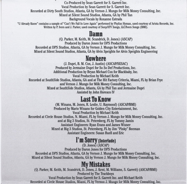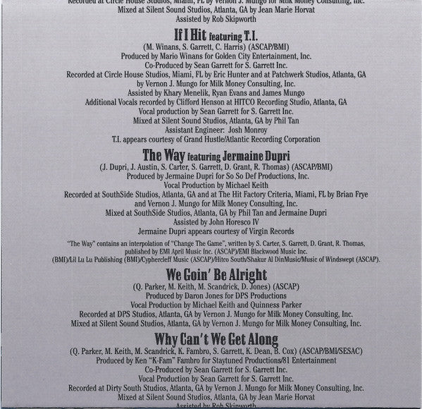 Track 4 contains a sample of "Can't We Fall In Love Again" performed by Phyliss Hyman, used courtesy of Arista Records, Inc. Written by P. Ivers and J. Parker, used courtesy of Sony/ATV Songs, LLC/Ivers Songs (BMI). Track 11 contains an interpolation of "Change the Game", written by S. Carter, S. Garrett, D. Grant, R. Thomas, published by EMI April Music Inc. (ASCAP)/EMI Blackwood Music Inc.(BMI)/Lil Lu Lu Publishing(BMI)/Cyphercleff Music(ASCAP)/Hitco South/Shakur Al DinMusic/Music of Windswept(ASCAP) Track 14 contains a sample of "That Sweet Woman of Mine" as performed by Leon Haywood. ℗ 1974 The Island Def Jam Music Group. Courtesy of The island Def Jam Music Group under license from Universal Music Enterprises. Written by L. Haywood, M. McQueen, Jr. and W. Williams, Jr. Used courtesy of Universal Music Publishing (BMI) Tracks 1, 5, 8, 12, 16 Recorded at DPS Studios, Atlanta, GA; Mixed at Silent Sound Studios, Atlanta, GA Track 2 Recorded at DPS Studios, Atlanta, GA; Mixed at Titanium Studios, Atlanta, GA Track 3 Edits & Music Tracking Recorded at Ghettopop Music Studios, Dallas, TX; Vocals Recorded at Dirty South Studios, Atlanta, GA; Additional Vocals Recorded at Audio Dallas Recording Studios, Garland, TX; Mixed at Patchwerk Studios, Atlanta, GA Tracks 4, 13, 17 Recorded at Dirty South Studios, Atlanta, GA; Mixed at Silent Sound Studios, Atlanta, GA Track 6 Recorded at SouthSide Studios, Atlanta, GA; The Hit Factory Criteria, Miami, FL; Mixed at SouthSide Studios, Atlanta, GA Track 7 Recorded at Circle House Studios, N. Miami, FL; Big 3 Studios, St. Petersberg, FL; Mixed at Big 3 Studios, St. Peterberg, FL Track 9 Recorded at Circle House Studios, Miami, FL; Mixed at Silent Sound Studios, Atlanta, GA Track 10 Recorded at Circle House Studios, Miami, FL; Patchwerk Studios, Atlanta, GA; Additional Vocals Recorded at HITCO Recording Studio, Atlanta, GA; Mixed at Silent Sound Studios, Atlanta, GA Track 11 Recorded at SouthSide Studios, Atlanta, GA; The Hit Factory Criteria, Miami, FL; Mixed at Silent Sound Studios, Atlanta, GA Track 14 Recorded at Fever Recording Studios, North Hollywood, CA; Dirty South Studios, Atlanta, GA; Mixed at Larrabee North, North Hollywood, CA Track 15 Recorded and Mixed at Silent Sound Studios, Atlanta, GA ℗ 2005 The Island Def Jam Music Group © 2005 The Island Def Jam Music Group, a division of UMG Recordings, Inc. Made in the EU. T.I. appears courteys of Grand Hustle/Atlantic Recording Corporation Jermaine Dupri appears courtesy of Virgin Records Three 6 Mafia appears courtesy of Sony Music Entertainment, Inc.