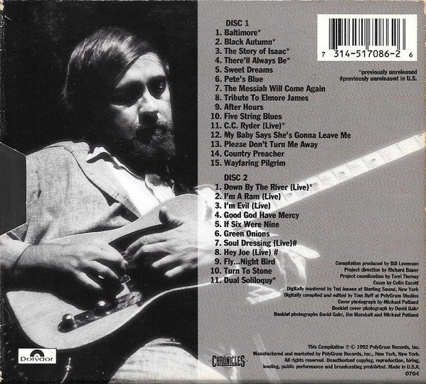 Issued in fat boy jewel case inside cardboard sleeve with 20 page booklet. Track 1-01 recorded October 1969, January 1970 & February 1971 at Woodland Studios, Nashville Tracks 1-02, 1-03 recorded July 1970 at Woodland Studios, Nashville Track 1-04 recorded July 1970, November 1970 & February 1971 at Woodland Studios, Nashville Tracks 1-05 to 1-07, 2-11 recorded July 1972 at the Record Plant, New York Tracks 1-08 to 1-10 recorded November 1972 at the Record Plant, New York Track 1-11 recorded May 1973 at the Marquee Club Tracks 1-12 & 1-13 recorded October 1973 at the Record Plant, New York Tracks 1-14 & 1-15 recorded June 1974 at the Record Plant, Sausalito Tracks 2-01 & 2-02 recorded November 1974 at Town Hall, New York Track 2-03 recorded March 1975 at the Amazing Grace Club, Evanston, Illinois Tracks 2-04 & 2-05 recorded 1974 at Electric Lady, Record Plant, Media Sound & Atlantic Studios, New York Track 2-06 recorded March 1977 at Clover Studios, Los Angeles Tracks 2-07 & 2-08 recorded June 1977 at Ubinchokin Hall, Japan Tracks 2-09 & 2-10 recorded June 1978 at Atlantic Studios, New York Tracks 1-01 to 1-04 from the unreleased album [r=4124796 Tracks 1-05 to 1-07 from the album 173476 Tracks 1-08 to 1-10 from the album 225684 Tracks 1-12 & 1-13 from the album 206120 Tracks 1-14 & 1-15 from the album 317492 Tracks 2-02 & 2-03 from the album 250628 Tracks 2-04 & 2-05 from the album 206119 Track 2-06 from the album 291931 Tracks 2-07 & 2-08 from the album 487895 Tracks 2-09 & 2-10 from the album 173478 Tracks 1-11, 2-01 & 2-11 previously unreleased, mixed at PolyGram Studios This Compilation Ⓟ&ⓒ1992 PolyGram Records Inc.,