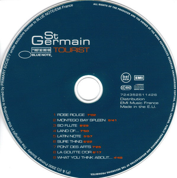 All tracks written, produced & mixed at The Magic House Studio. Mastering Translab, Paris Publishing Primary Society Publishing except track 6 Universal Music / Primary Society Publishing Photo cover: "Station du touriste St Germain". Paris Musée Carnevalet. PMVP/LADET. * Track 1 "Excerpts from 'Live At Montreux', as performed by Marlena Shaw used under license from Blue Note Records, a division of Capitol Records, Inc." ** Track 2 Lovely guitar by Mister 'Ernest Ranglin' courtesy of Palm Pictures" *** Track 6 Contains elements from "Harry's Philosophy" (Miles Davis & John Lee Hooker) used courtesy of Universal Music/Special Markets, Inc. (P) & (C) 2000 Primary Society Distribution EMI Music France The copyright in this recording is owned by Primary Society under exclusive license to Blue Note/EMI France Printed in the E.U. Marketed and distributed by EMI Packaging: 6-panel digipak.