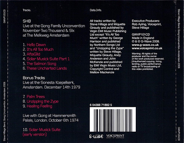 Tracks 7 to 9 recorded live at the Sonesta Koepelkerk, Amsterdam. December 14th 1979. Track 10 recorded live with Gong at Hammersmith Palais, London, October 6th 1974 ℗&© G-Wave 2008