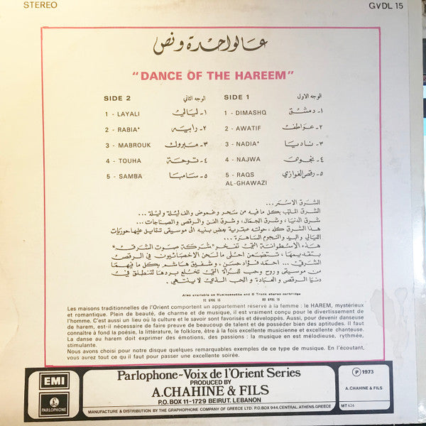 Parlophone - Voix de l'Orient Series Produced by A. Chahine & Fils, Beirut (P) 1973