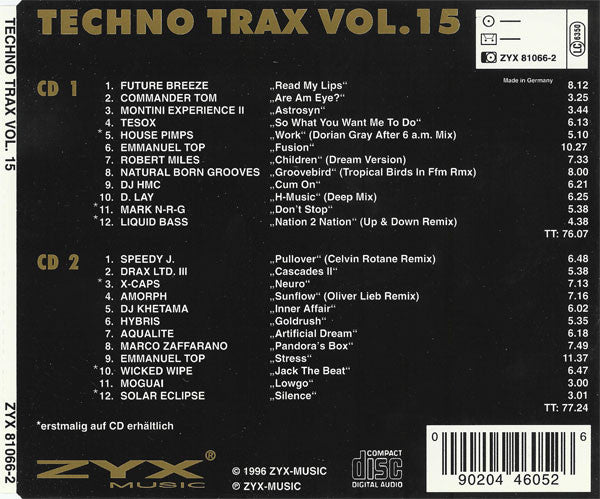 Tracks 1.02, 1.03, 1.11, 2.11 titles are listed without mix information. Track 1.10 title is listed as "H-Music (Deep Mix)". Track 2.05 title is listed as "Inner Affair". Track 2.11 artist credited as Moguai. ℗ & © 1996 ZYX-Music Made in Germany Comes in printed slim jewelcase.